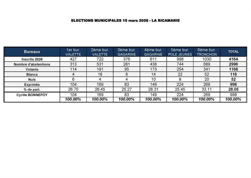 Ci-dessous, les résultats des élections municipales la Ricamarie :