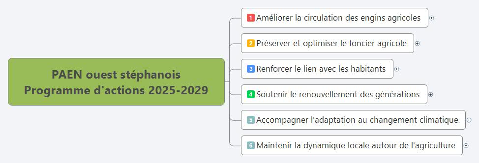 Le PAEN ouest stéphanois a été créé le 13 janvier 2020 et couvre actuellement 3 405 ha. Il concerne plus de 55 exploitations et s’étend sur les communes de Saint-Genest-Lerpt, Roche-la-Molière, Unieux, Saint-Victor-sur-Loire (Saint-Étienne), La Ricamarie, Le Chambon-Feugerolles et Firminy.